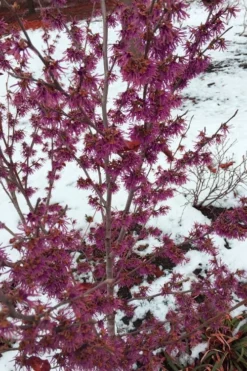 Growing 8 to 10 feet tall and equally as wide, the Amethyst Witch Hazel can be grown as a large shrub or small tree. As a shrub she is ideal for use as a specimen, in groupings, or as a natural hedge. As the shrub grows taller, lower branches can be removed to form a very attractive small tree that serves well as a colorful focal point specimen in landscape borders and home foundations. A fine addition to purple theme gardens, fragrance gardens and cottage gardens.